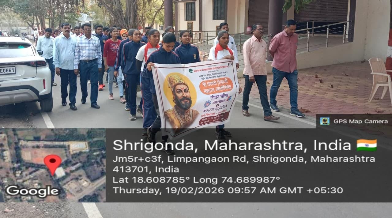 यानिमित्ताने महाविद्यालयापासून ते महात्मा फुले चौकापर्यंत भव्य पदयात्रा काढण्यात आली. "छत्रपती शिवाजी महाराज की जय" अशा घोषणांनी श्रीगोंदा शहर दुमदुमून गेले होते. कार्यक्रमाची सुरुवात प्राचार्य डॉ. प्रकाश साळवे यांच्या हस्ते शिवप्रतिमेचे पूजन करून करण्यात आली.
